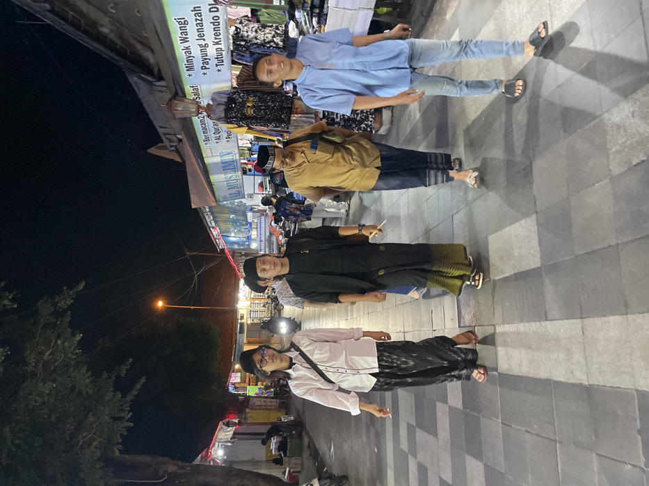 This nocturnal image captures a bustling market street in Kauman, Indonesia