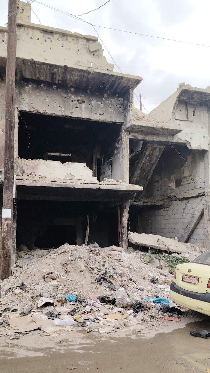 - "The image displays a devastated urban scene in Al-Qaboun Municipality, Syria, under an overcast sky" by FM-YWUCQ2, licensed under CC BY 4.0