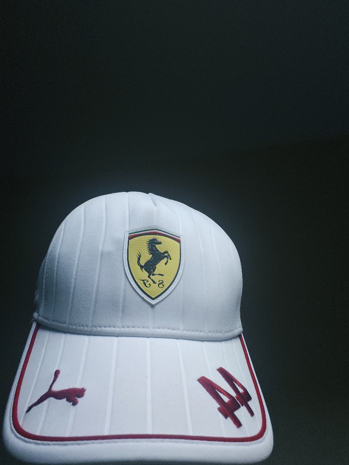 - "The image displays a white baseball cap positioned against a uniformly dark and featureless background" by FM-VruEl1, licensed under CC BY 4.0