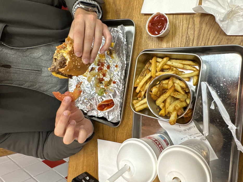 - "This image depicts a close-up, top-down view of a dining experience inside a Five Guys restaurant, such as the one located at 49-51 Avenue de l'Opéra in Paris, France" by FM-NVhht2, licensed under CC BY 4.0