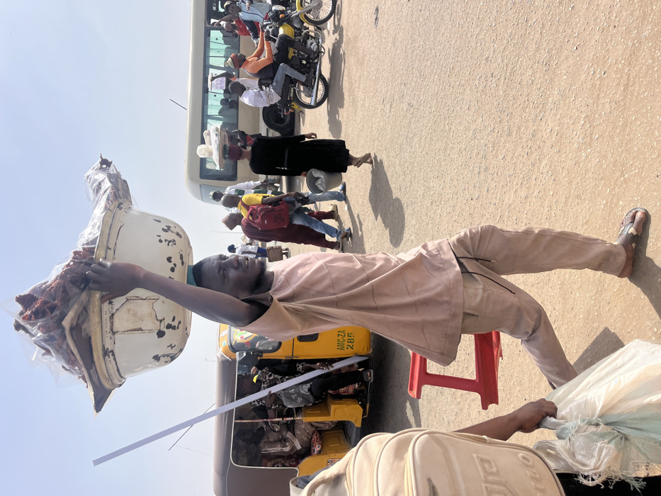 The image displays a bustling street scene in Nyanya, Nigeria, under bright, clear daylight