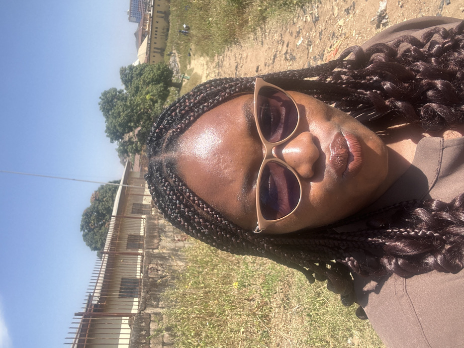- "The image depicts a close-up selfie of a dark-skinned individual with braided hair, wearing beige cat-eye sunglasses with dark lenses, and a brown top" by FM-KeK3z2, licensed under CC BY 4.0