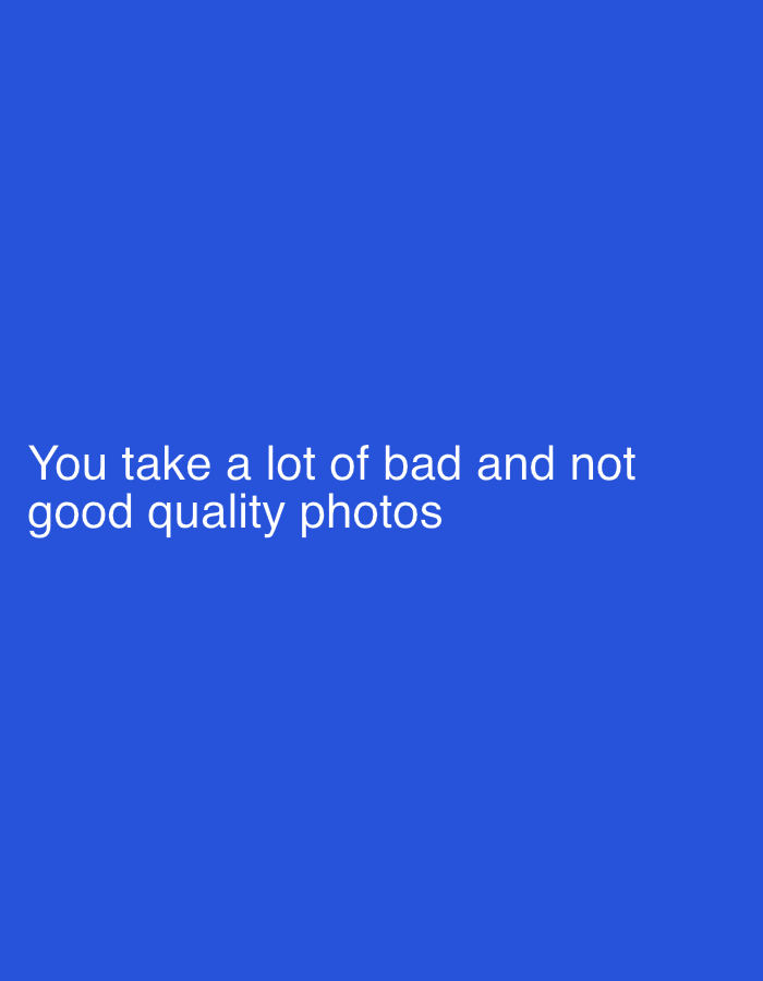 - "A text overlay on a blue background reads, "You take a lot of bad and not good quality photos" by FM-xlahD2, licensed under CC BY 4.0