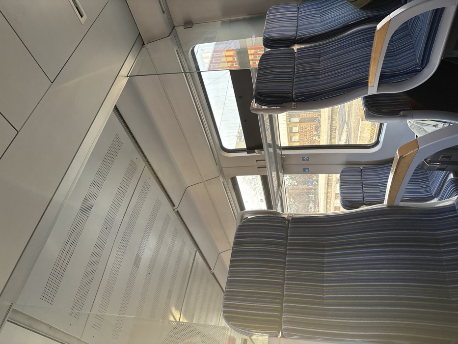 - "The image displays the interior of a passenger train carriage, observed from within, stopped at what is identified as Karlovo train station in Bulgaria" by FM-I9aiE2, licensed under CC BY 4.0