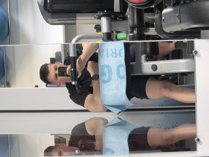 male individual taking a mirror selfie in a gym located in Lyaskovets, Bulgaria