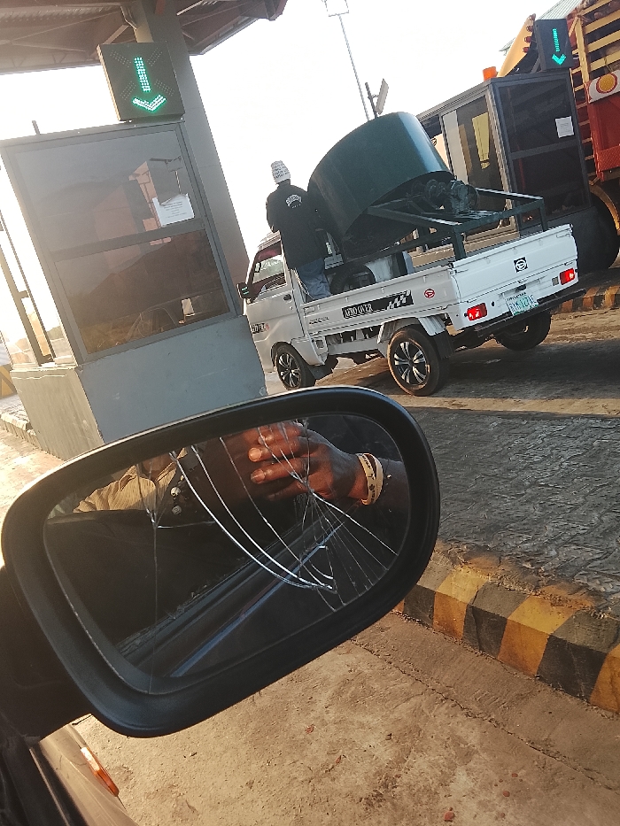 - "The scene depicts a toll plaza or checkpoint in Masaka, Nigeria, during daylight hours with a low sun angle" by FM-LIDYd2, licensed under CC BY 4.0