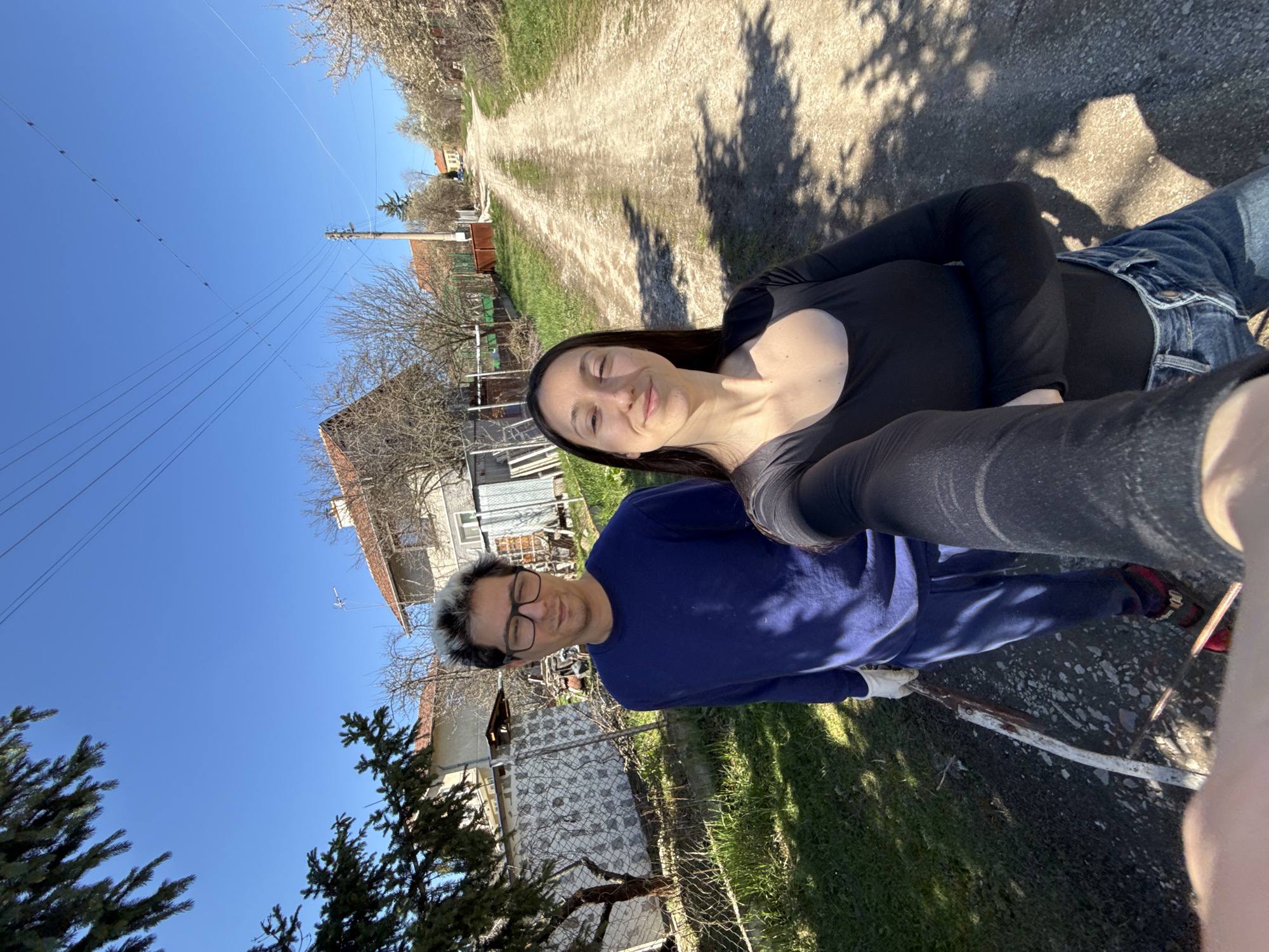 The image is a selfie of a woman and a man in Galabovtsi, Bulgaria