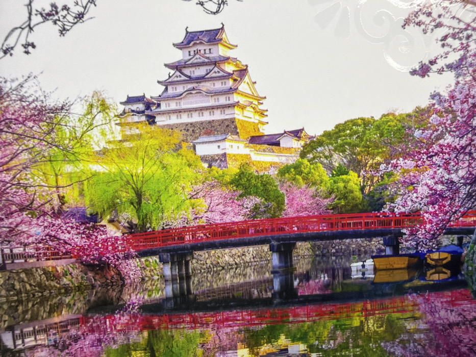 The image is presented in a vertical (portrait) orientation but depicts a horizontal landscape scene, characteristic of Japan