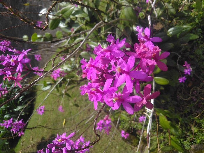 - "This forensic image captures a close-up, slightly upward-angled view of multiple clusters of vibrant magenta-purple Epidendrum radicans flowers, commonly known as Ground Orchids, situated in an outdoor environment in Cipanas, Indonesia" by FM-cexUw2, licensed under CC BY 4.0
