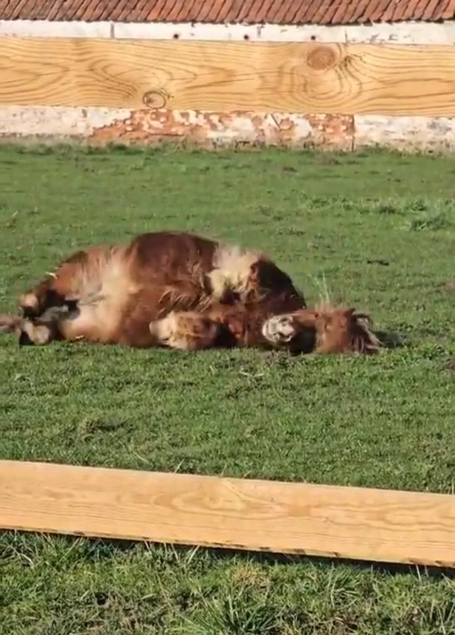 - "A brown and white pony is rolling around on a green grass lawn on a sunny day" by FM-dTRWD3, licensed under CC BY 4.0