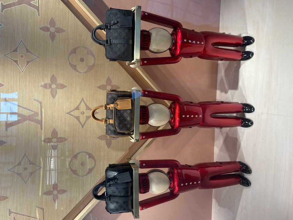 The image displays a retail presentation within a Louis Vuitton establishment located in Dubai, United Arab Emirates