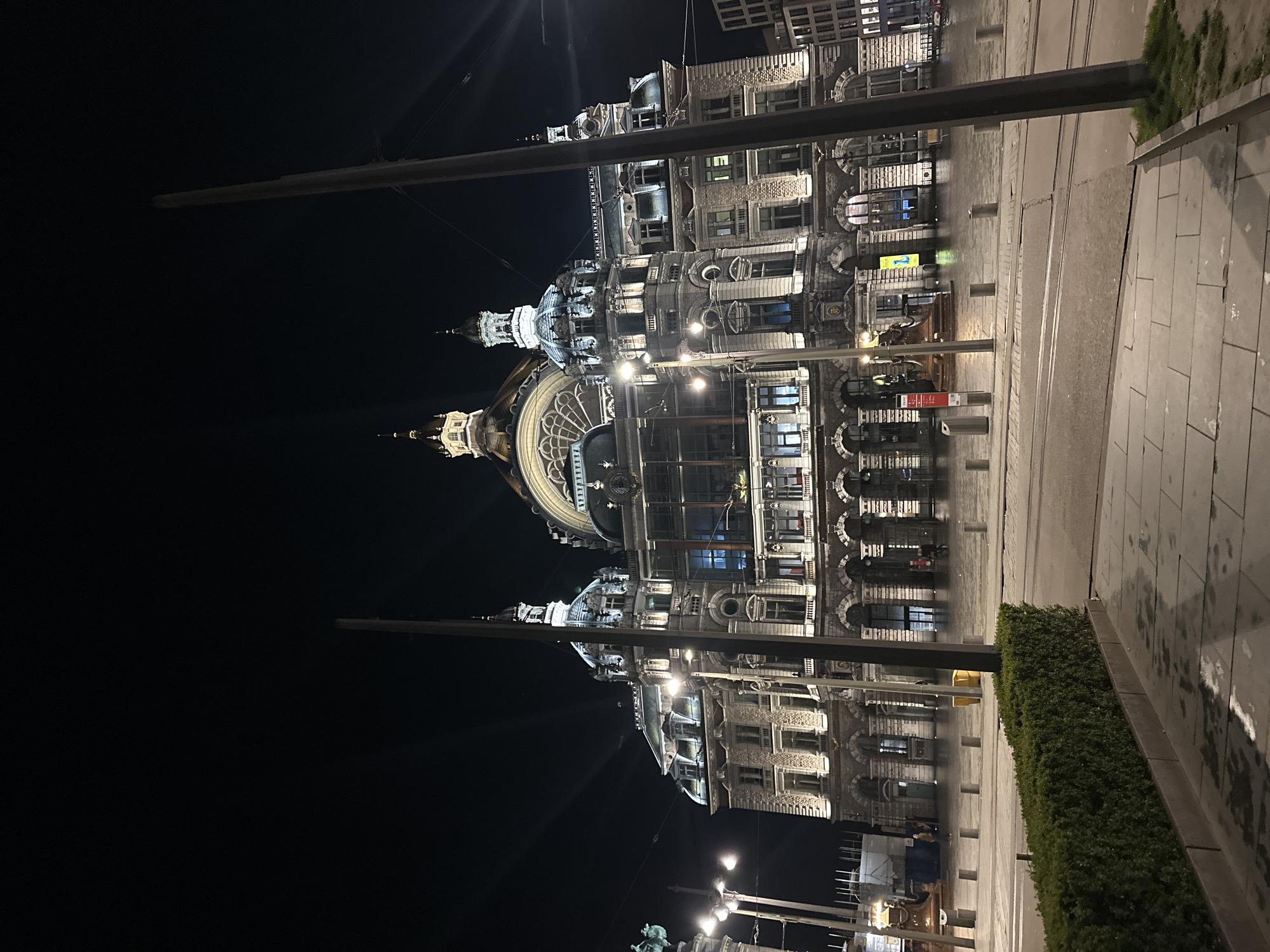 - "The image displays the illuminated facade of Antwerpen-Centraal railway station in Antwerp, Belgium, during nighttime" by FM-5wVRG3, licensed under CC BY 4.0