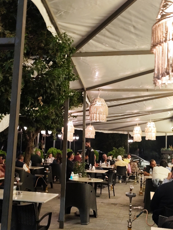 - "The image depicts an outdoor cafe or restaurant patio at night in Joubar Municipality, Syria" by FM-BskwX2, licensed under CC BY 4.0