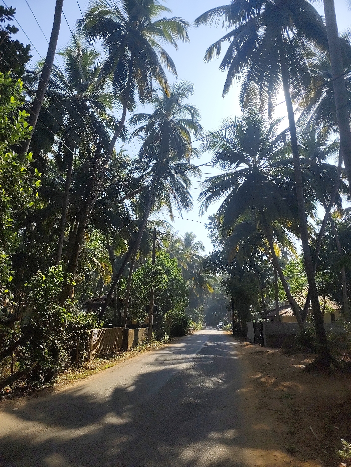 - "A straight asphalt road cuts through dense tropical vegetation, lined by towering palm trees casting long shadows" by FM-yj6ly1, licensed under CC BY 4.0