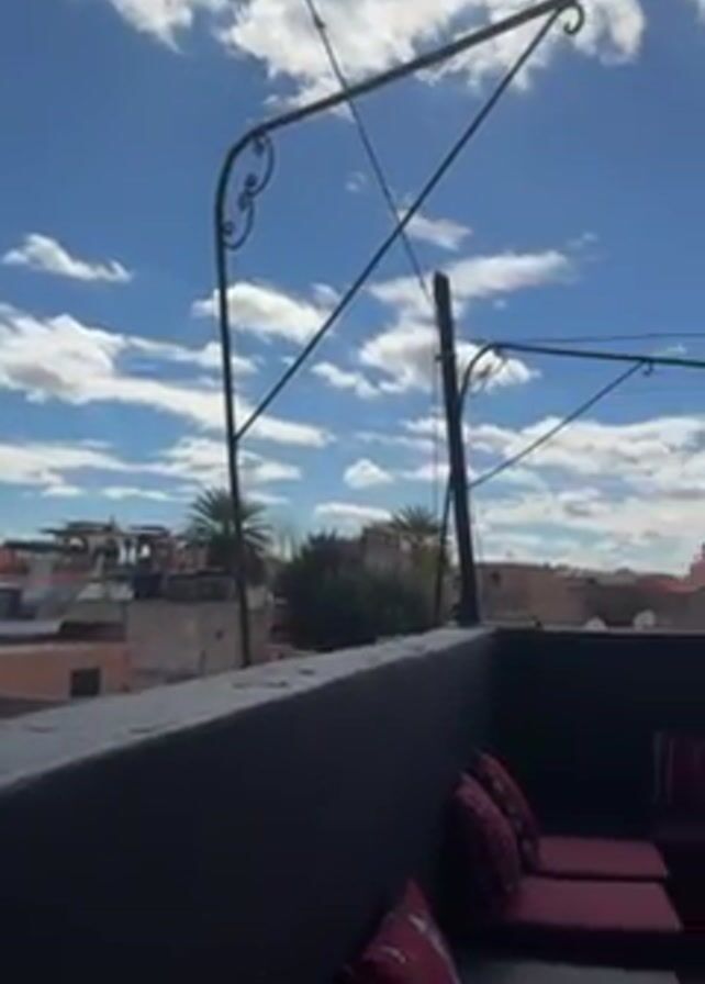 rooftop restaurant under a partially cloudy blue sky