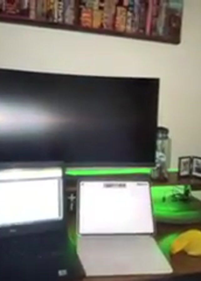 - "The video starts with a shot of a desk with two laptops, a tablet, a curved monitor, a glass of liquid, a pair of earphones, and a banana peel" by FM-9ARGK2, licensed under CC BY 4.0