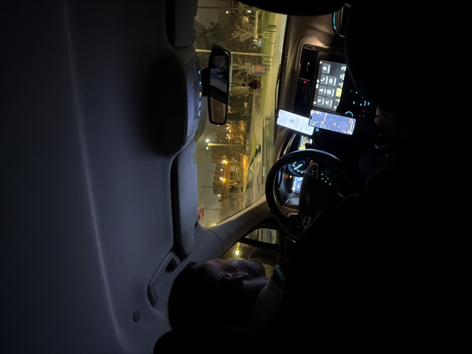 - "The image depicts the interior of a vehicle at night, specifically in l'Hospitalet de Llobregat, Spain, viewed from a rear passenger perspective looking forward" by FM-AOnpD3, licensed under CC BY 4.0