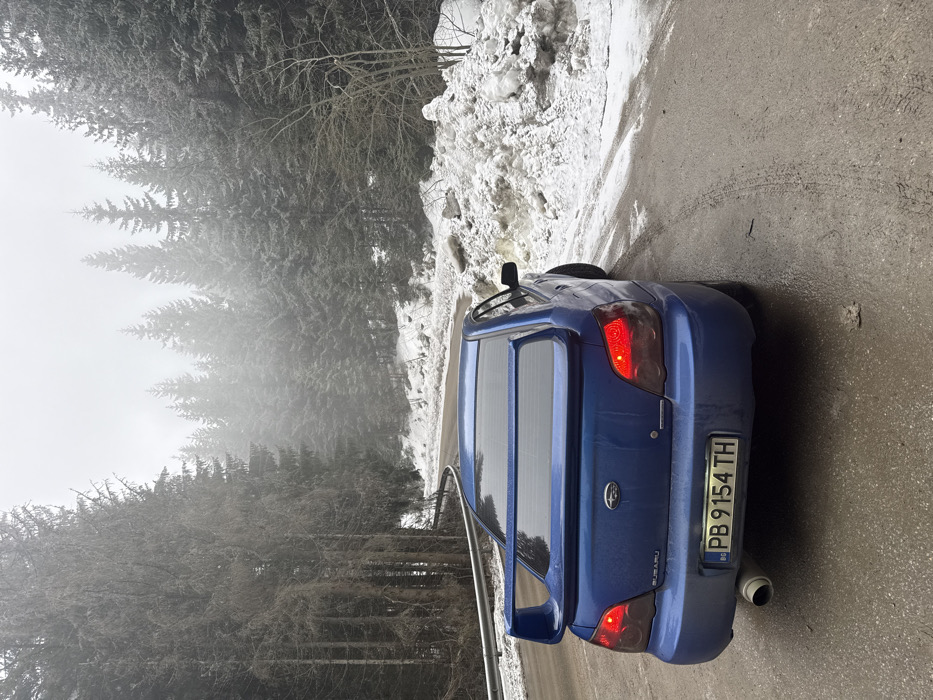 - "A blue Subaru sedan, featuring a prominent rear spoiler and a chrome exhaust tip, is stationary on the right shoulder of a wet, dark grey asphalt road in a forested, mountainous area near Batak, Bulgaria" by FM-OlZw82, licensed under CC BY 4.0