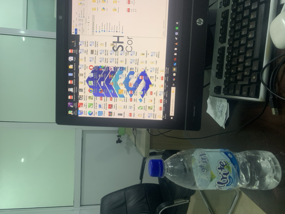 The image depicts an indoor office workstation, likely situated in Abuja, Nigeria