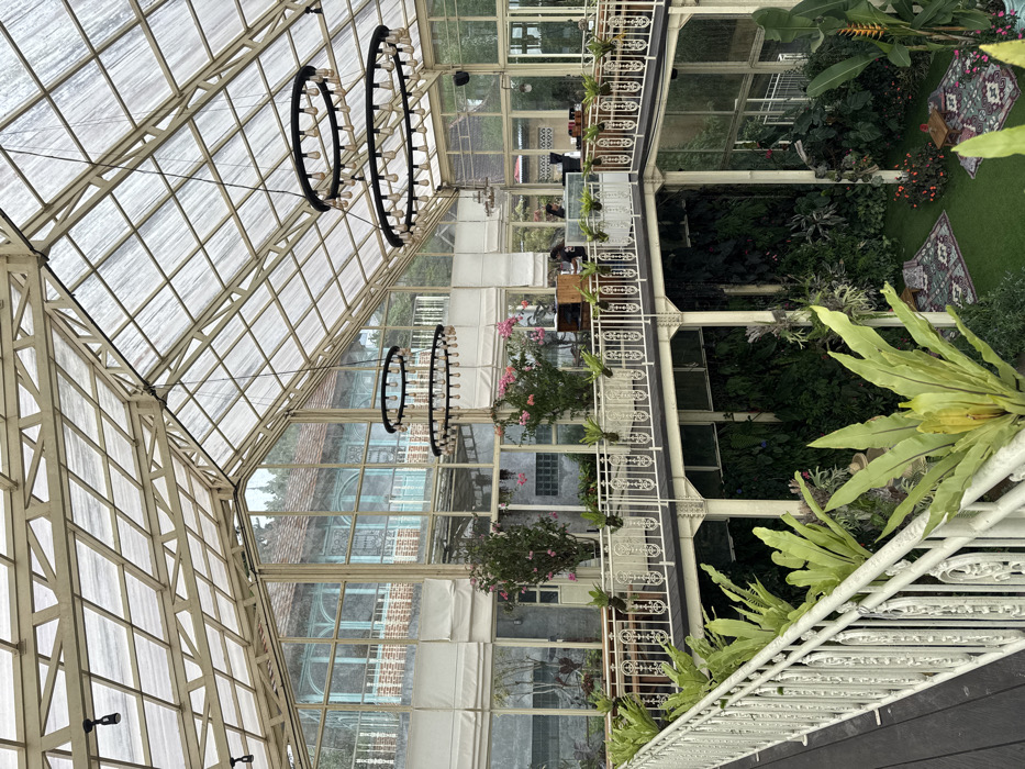An interior shot of a greenhouse with a striking architecture