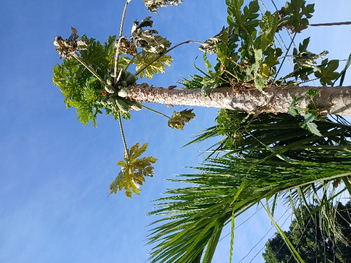 - "A tall papaya tree is seen from a low angle against a bright blue sky" by FM-EStUx1, licensed under CC BY 4.0