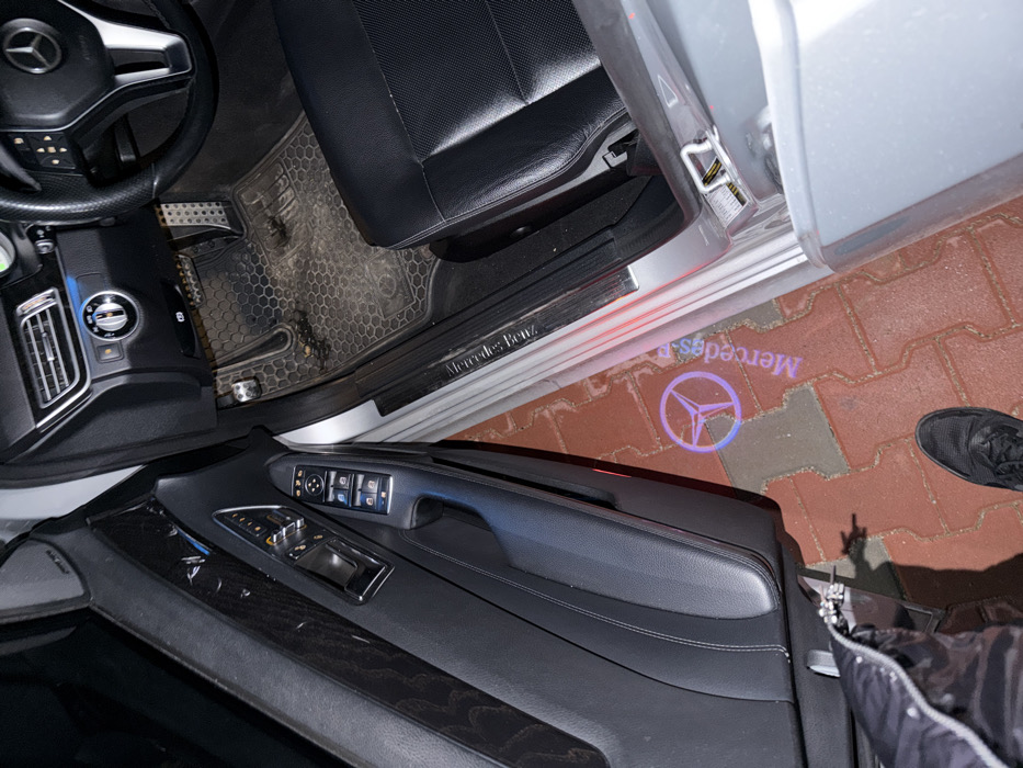 - "The image displays the open driver's side door and interior of a silver Mercedes-Benz vehicle, viewed from an elevated perspective looking down and into the car" by FM-Sq9af2, licensed under CC BY 4.0