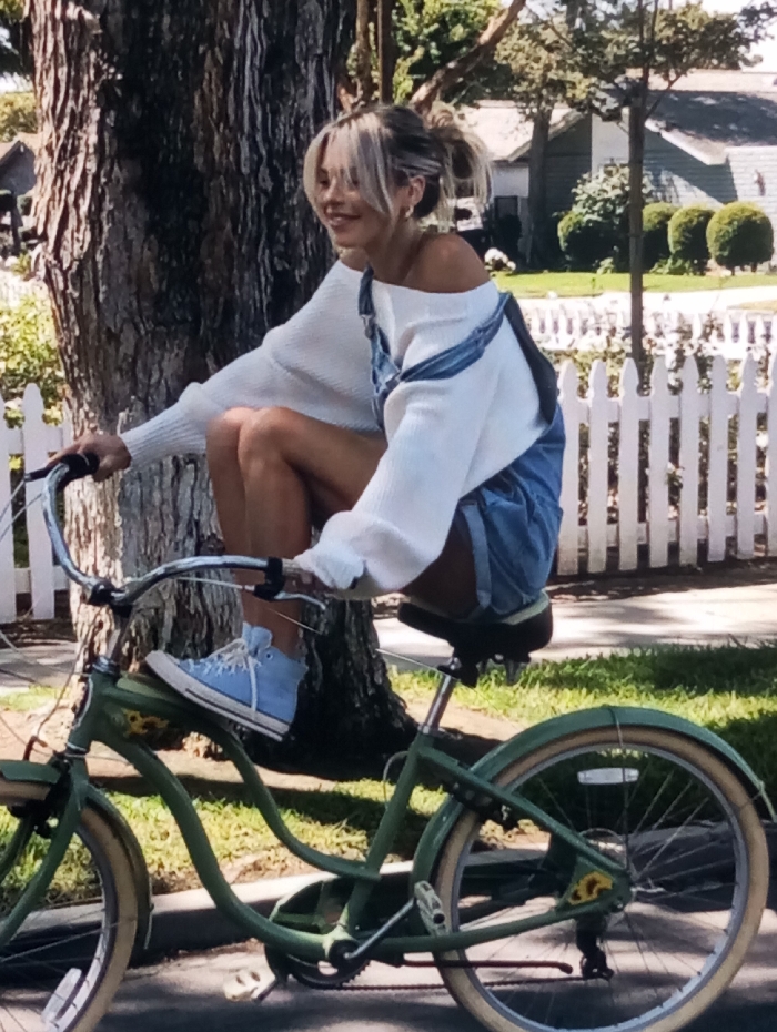 - "A young female is depicted outdoors, positioned on a green cruiser bicycle" by FM-a9LKm1, licensed under CC BY 4.0