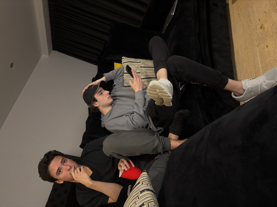 - "An indoor scene in Jesús del Monte, Mexico, depicts two young adult males seated on a large black fabric sofa under dim lighting conditions" by FM-LJMen1, licensed under CC BY 4.0