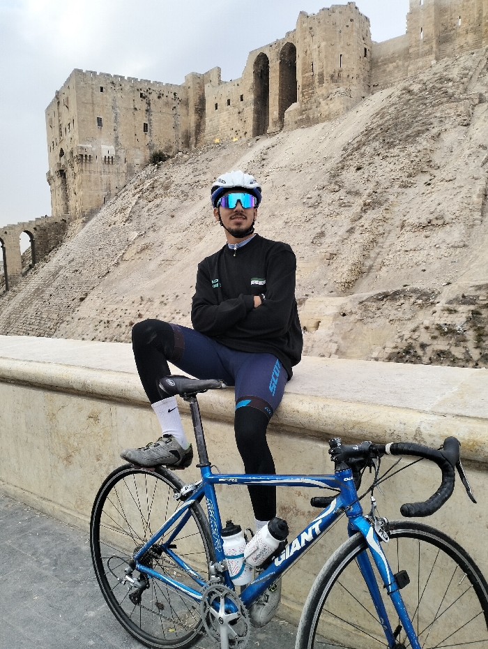 - "A cyclist rests atop a stone wall next to his blue Giant road bike" by FM-4RDN43, licensed under CC BY 4.0