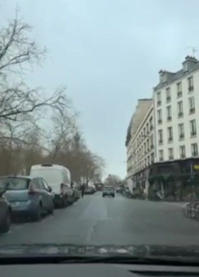 street scene in Paris, France, taken from inside a vehicle