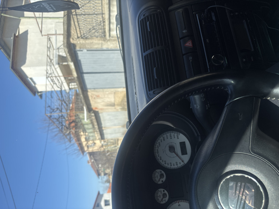 The image presents a driver's perspective from a stationary vehicle on a clear, sunny day in Radomir, Bulgaria