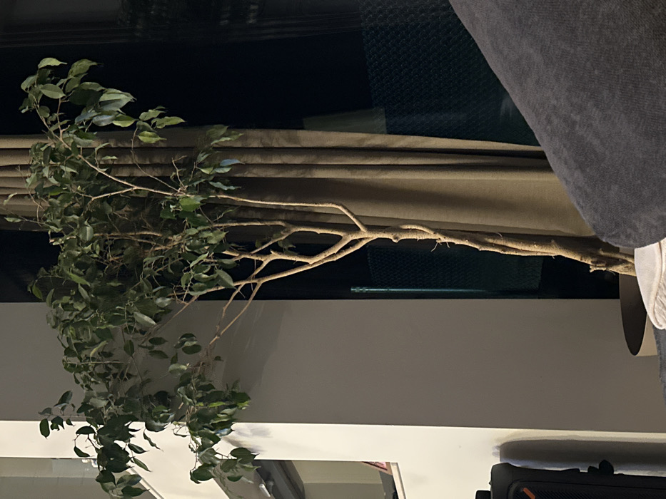 - "The image depicts an indoor scene in Oreshak, Bulgaria, centered on a large, multi-stemmed Ficus benjamina plant with green leaves, situated in a pot" by FM-Egtjl2, licensed under CC BY 4.0