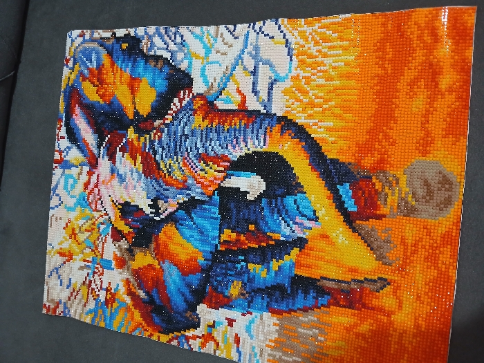 - "A completed diamond painting, depicting a stylized, multi-colored elephant, is laid flat on a dark gray surface" by FM-0UC0T2, licensed under CC BY 4.0