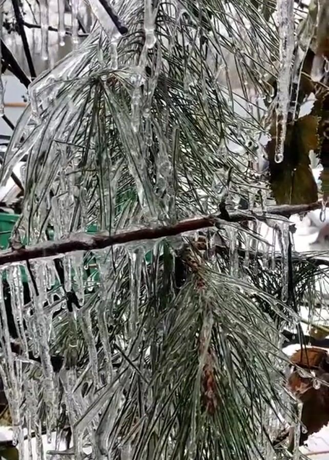 pine branch, covered in icicles