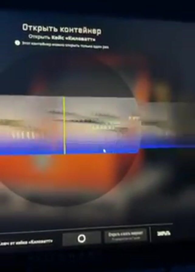 A person is opening a "Kilowatt" container in a video game on a computer. The container displays various guns, and the yellow line indicates the item that will be received. The person is waiting for the game to determine the item in the container.