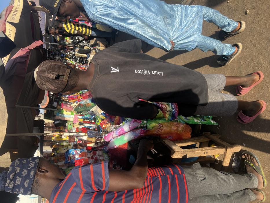 The image depicts an outdoor market scene in Sabon Tasha, Nigeria