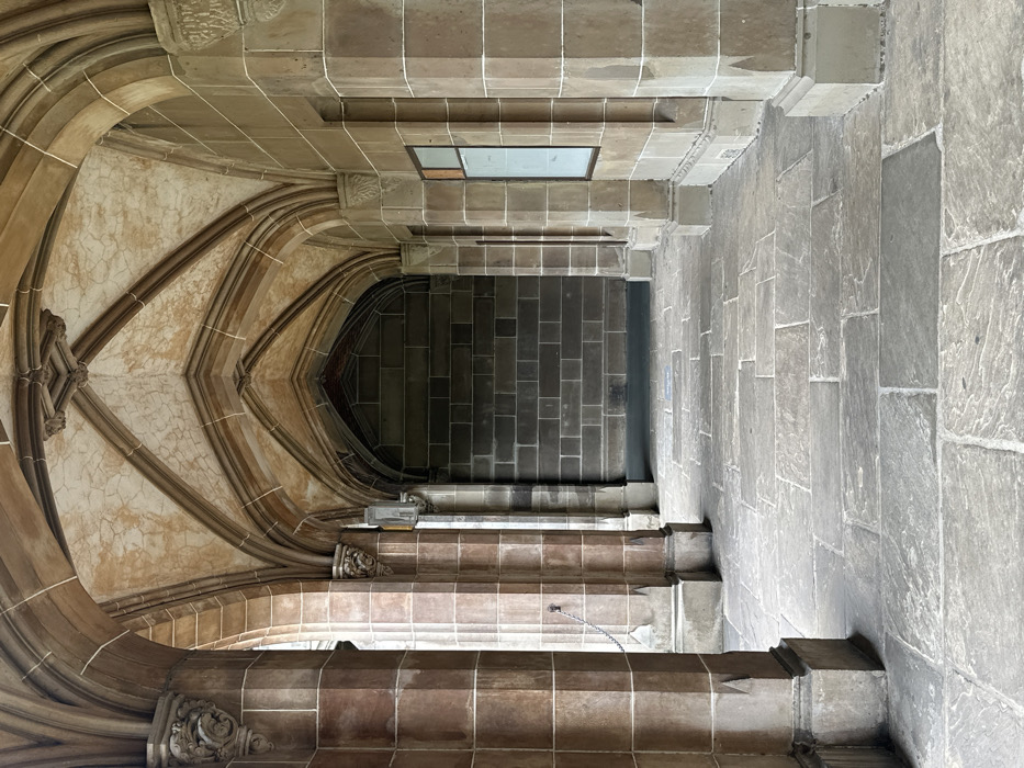 - "The image displays an empty stone cloister or hallway, characterized by Gothic-revival architecture, likely situated within the University of Melbourne campus in Parkville, Australia" by FM-P0ePn2, licensed under CC BY 4.0