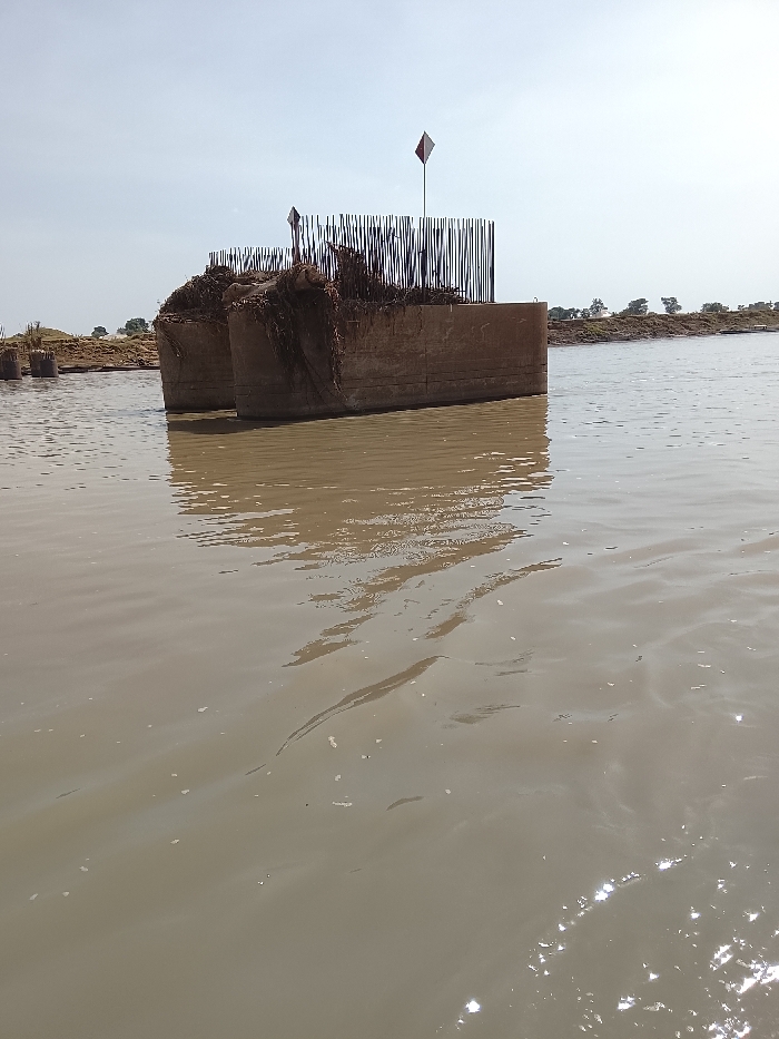 - "The image depicts a construction scene within a body of murky brown water in Ibi, Nigeria, under a bright, hazy sky" by FM-m079f2, licensed under CC BY 4.0