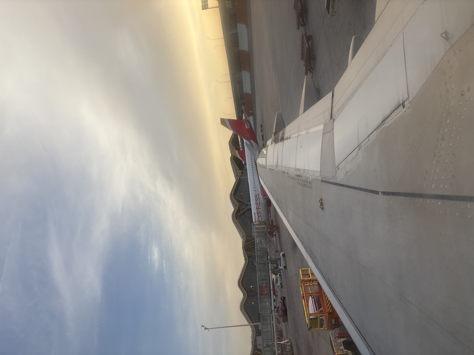 - "The image depicts an airport scene at sunrise or sunset, viewed from the window of an aircraft" by FM-fulAZ2, licensed under CC BY 4.0