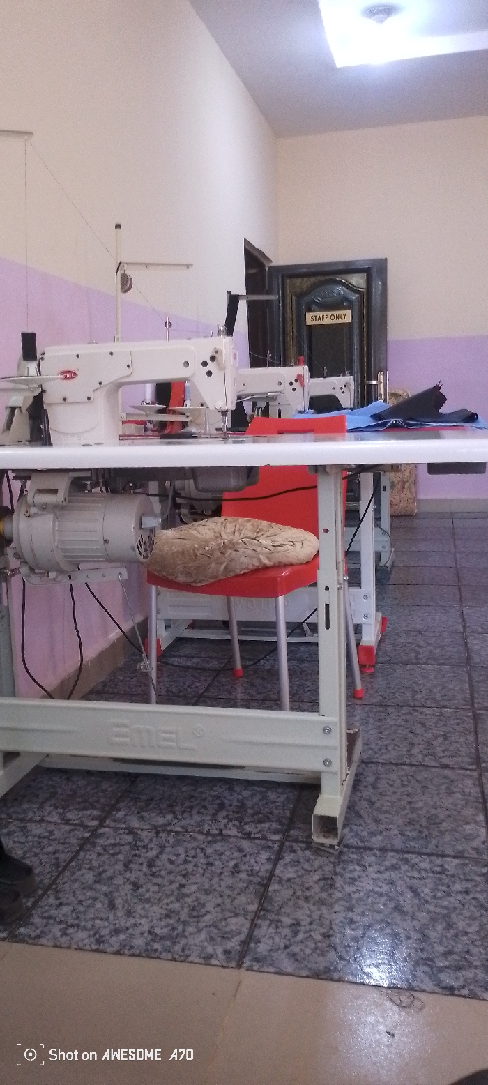 The image displays an interior view of an industrial sewing area, likely a workshop or training facility, located in Unknown, Unknown