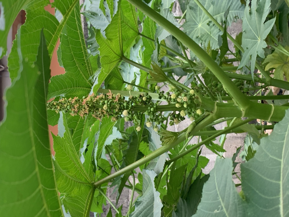 - "A close-up vertical image depicts the upper portion of a robust, green plant identified as a castor oil plant (Ricinus communis), located in Ikorodu, Nigeria" by FM-8xdlM2, licensed under CC BY 4.0