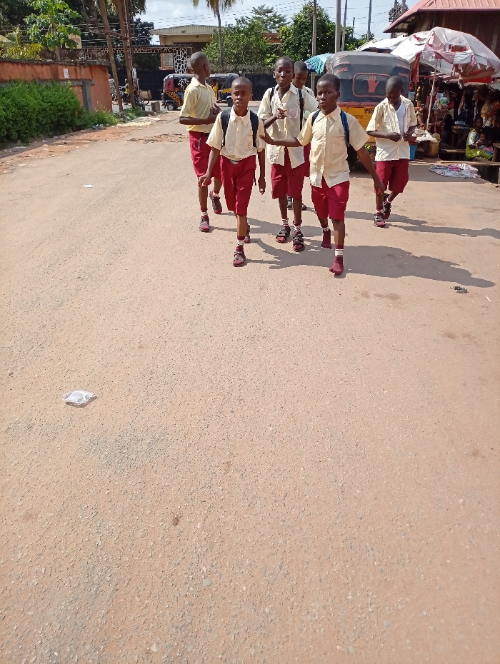 - "Six boys, appearing to be students, are walking on an unpaved, light brown dirt road in Obosi, Nigeria" by FM-vnTjF3, licensed under CC BY 4.0