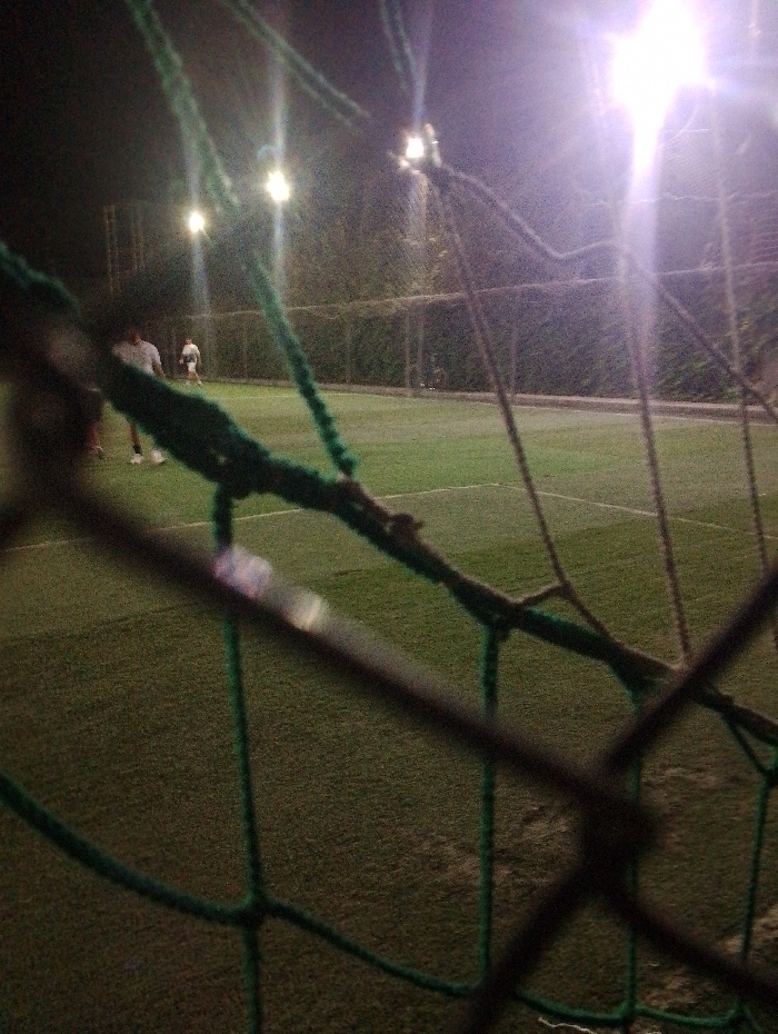 - "The image displays an artificial turf sports field at night, located in Kafr Sousa Municipality, Syria, viewed through a heavily blurred green and black net in the immediate foreground" by FM-6bwC12, licensed under CC BY 4.0