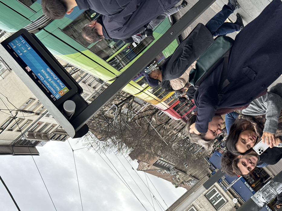 - "The image captures an urban street scene in Strasbourg, France, specifically at a tram stop, on an overcast day at 11:29 AM on November 15, 2025, as indicated by a digital tram schedule display" by FM-BaEEJ2, licensed under CC BY 4.0