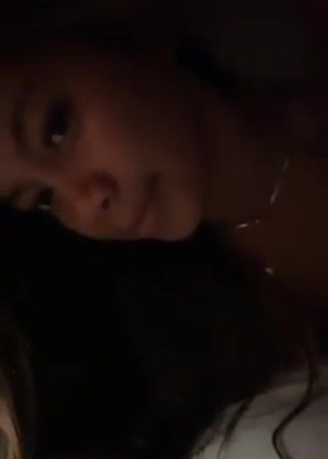 person with long dark hair and a gold necklace looking at the camera with a slight smile. The environment is dark, but the person's face is visible. Their expression is calm and subtle. The camera remains stationary throughout the clip.
