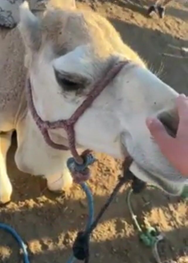- "A person is petting a camel on its face" by FM-uegzv2, licensed under CC BY 4.0