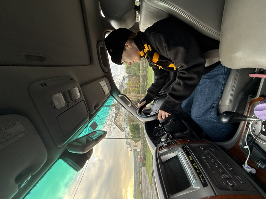- "interior of a right-hand drive vehicle, appearing to be a Toyota Land Cruiser, with a person seated in the driver's seat" by FM-8gNgZ2, licensed under CC BY 4.0