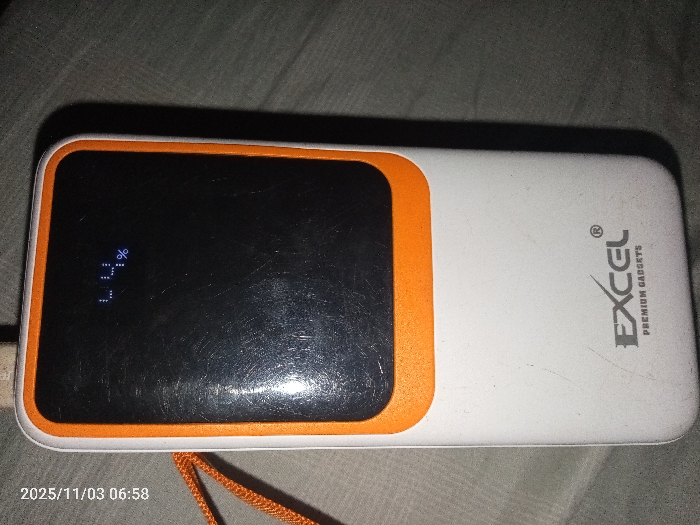 - "The image displays an Excel brand power bank positioned horizontally on a dark, textured surface, likely fabric, in the city of Unknown, Unknown" by FM-knxhc2, licensed under CC BY 4.0
