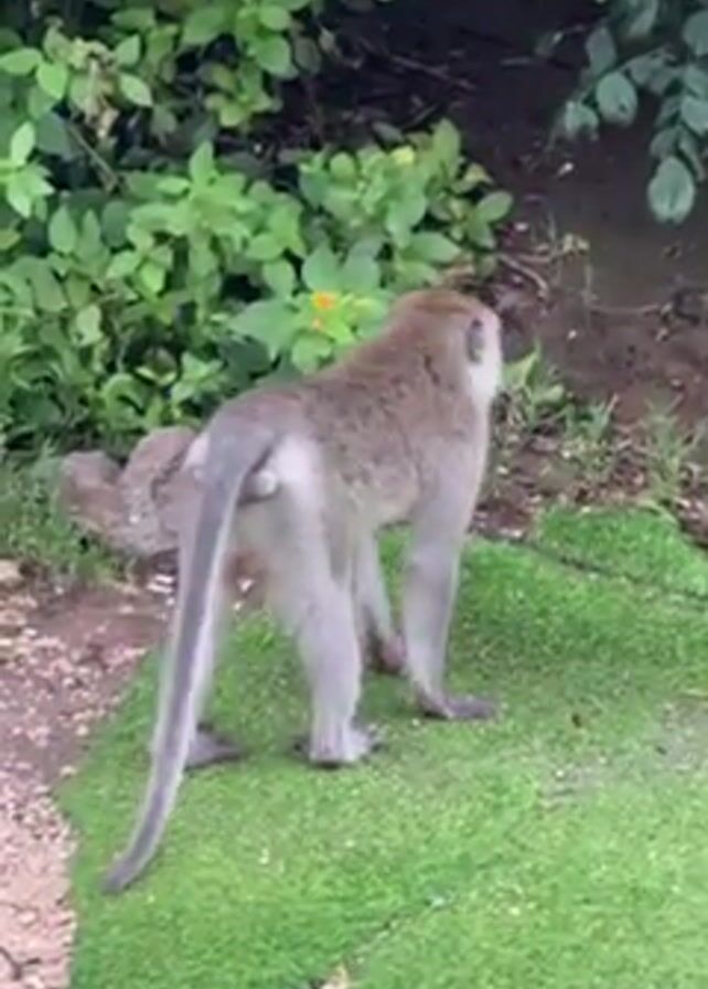 - "A monkey stands on a patch of artificial grass next to some low green plants" by FM-QYAUi2, licensed under CC BY 4.0