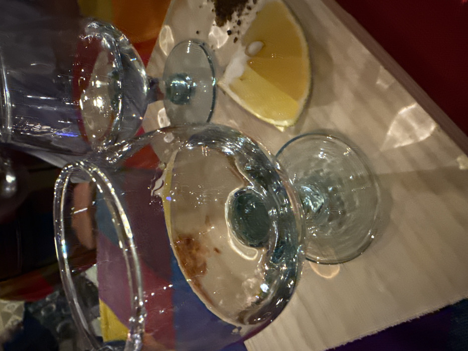 - "Two clear glass copitas, each containing a transparent liquid, are positioned on a light-toned wooden serving board" by FM-rjc8l1, licensed under CC BY 4.0